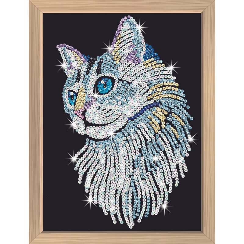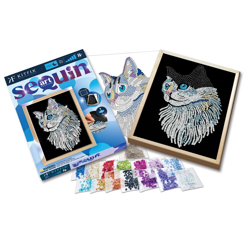 KITFIX Amatniecības komplekts Sequin Art Blue Premium spīdumiņu māksla, Balts kaķis, FP1711