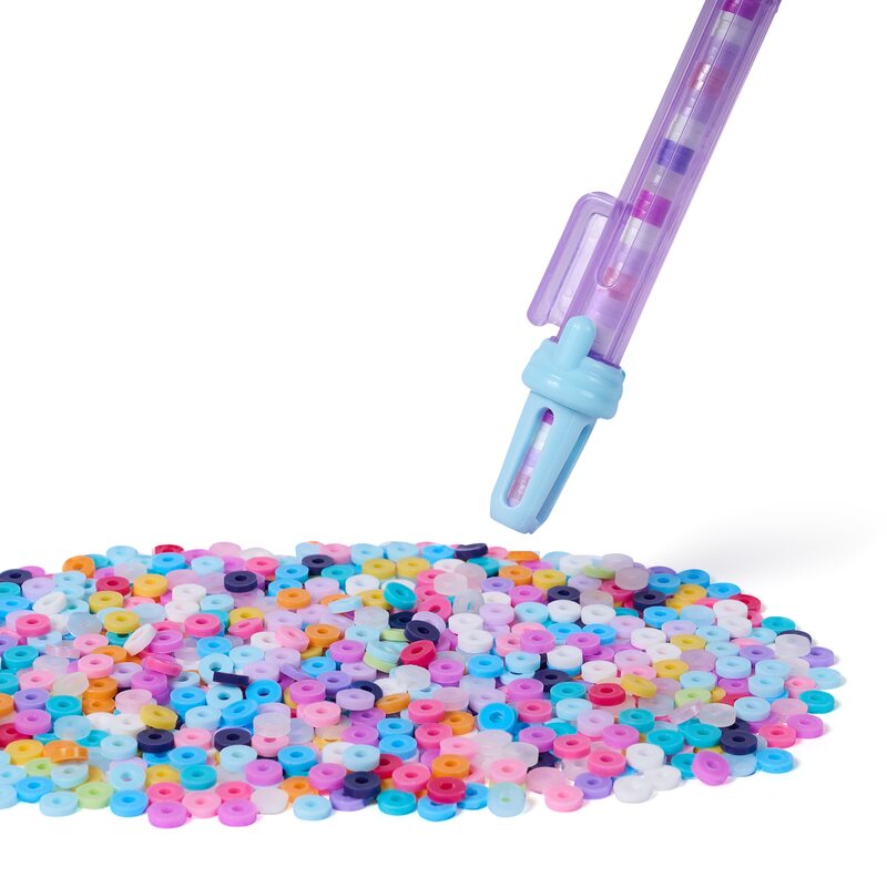 Ar "Stack’d Heishi" rokassprādžu veidošanas komplektu tas ir tikpat vienkārši kā sakraut, savērt un aiztaisīt. Savāc krelles ar ātro un ērto pērļošanas pildspalvu, tad saver visu kopā un pabeidz ar iespaidīgo pašsavienojošo aizdari, kas ar klikšķi aiztaisa rokassprādzi tieši uz tavas rokas. Izveido līdz pat 15 rokassprādzēm!